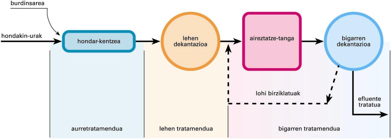 Bilbo Handiko Uren Partzuergoak Arrigorriagan duen Venta Altako araztegiaren eskema. Araztegitik irteten den ura hornidura-sarera bideratzen da, kontsumora
