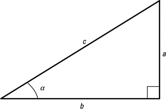 sin α = a/c, cos α = b/c eta tan α = a/b.